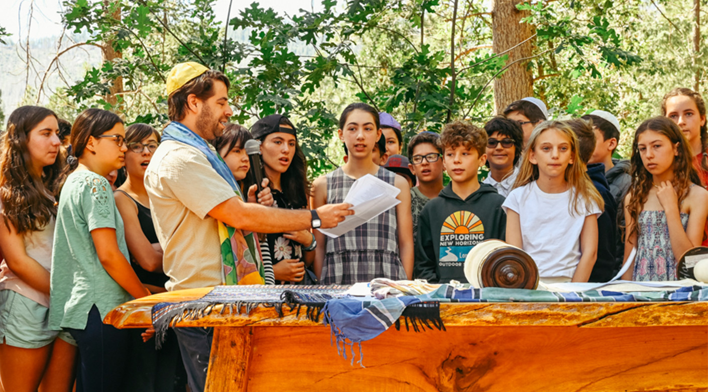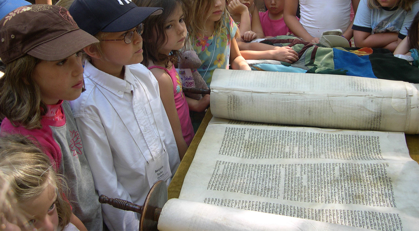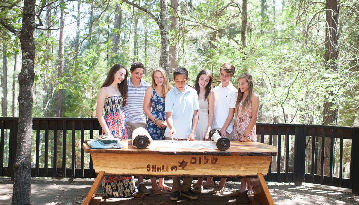 Now it resides in the divine Sierra Nevada Mountains just outside Yosemite National Park. Every Friday night, it is lovingly carried from one end of camp to the other, accompanied by guitars and song-leaders, gathering the children to Shabbat. Every Saturday, we read from its ancient pages. We are in touch with something powerful, nearly magical, when reading from the spiritual tree of life while surrounded by the actual trees of life. That experience is deepened and enriched when wearing the hand-painted silk tallitot which visiting artist Nancy Katz helped our children and staff to create. We sanctify this experience when we acknowledge that at the same time that Moses received the Torah at Sinai, Native American Miwuk people were sitting around the same granite stones which surround our outdoors bimah. Reading from this Torah, in this sacred space, connects us to both of these legacies.