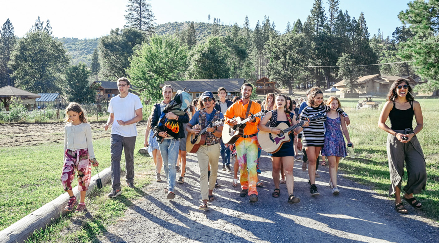 Now came a big challenge–what should we do with it? Serendipitously—or b’shert—Rabbi Yitz Greenberg came to San Francisco about that time on a Center for Leadership and Learning teaching tour. Tawonga directors Ken Kramarz and Deborah Newbrun volunteered to drive him from gig to gig and—between stops—talked about ways to deepen the Jewish experience at camp. We told Rabbi Greenberg that it was our camp tradition on Shabbat to take our guitars and song-leaders to the furthest camper cabin and start serenading the kids. Like a pied piper, we’d pick up campers bunk by bunk, singing Shabbat songs until the entire camp community was strolling and singing together, heading to the dining hall for blessings and dinner.