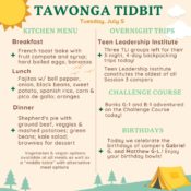 Below, have a look at the “Tawonga Tidbit” for some more fun Camp facts from the day.