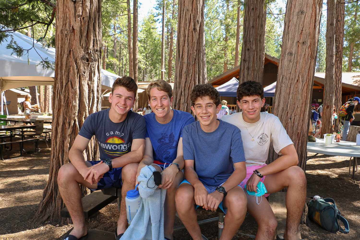 The first few hours at Tawonga are quite busy: meeting (and reuniting) with bunkmates and counselors, getting to know each other through fun and silly games, settling into their cabins, collaborating on Work Wheels (the system through which bunks share responsibilities like cleanup after meals) and setting out on Havurah Hikes with bunkmates. These hikes help campers to re-familiarize themselves with Camp facilities like the Health Center, Arts & Crafts or the Rainbow Lounge, the Camp therapy space.