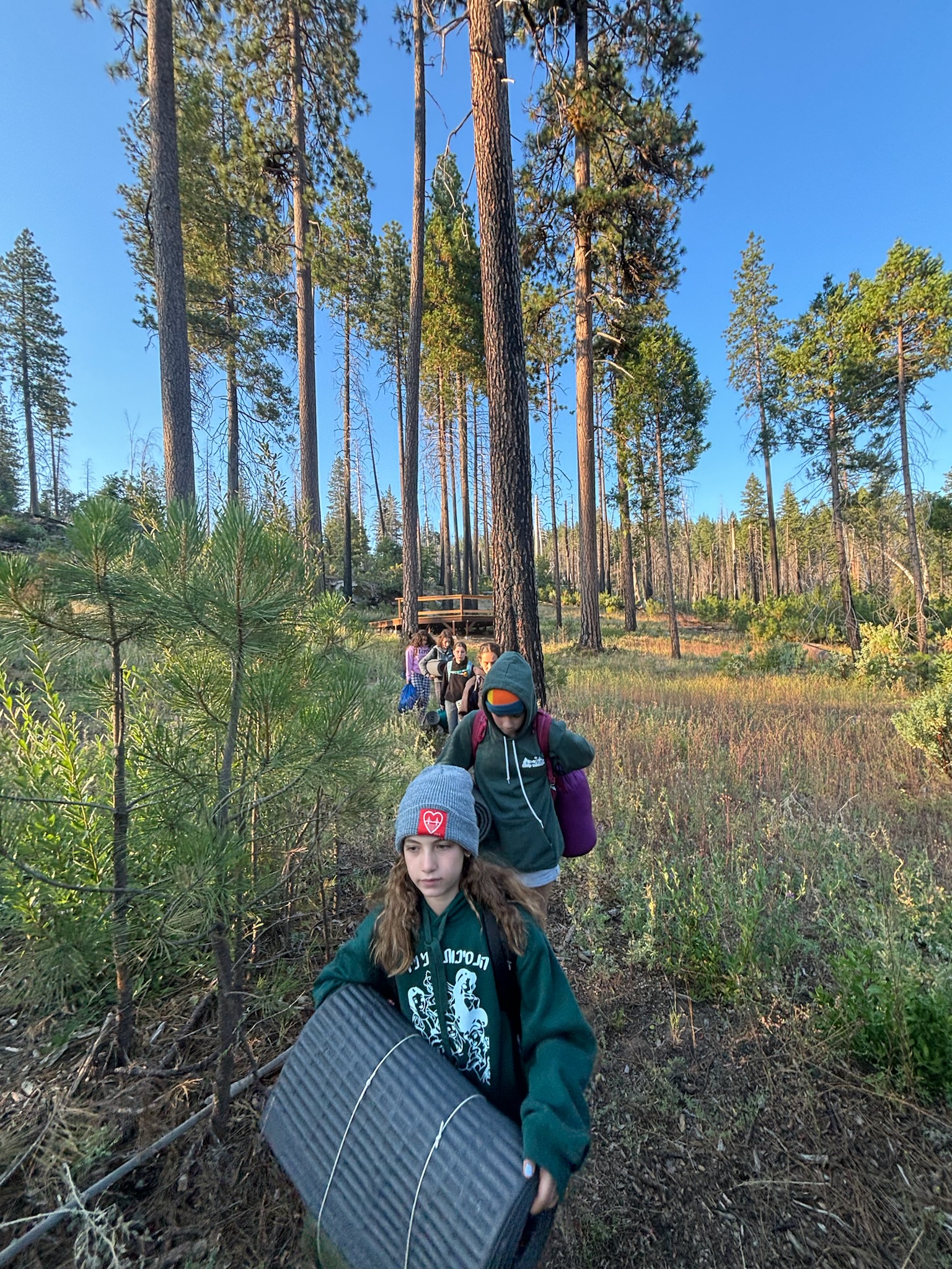 Session 3, 2024 Galil campers engaged in especially meaningful chugim (skill-based electives); “Junior Rangers of the Stanislaus National Forest.” This three-block elective included campers from multiple Galil bunks and focused on further defining the Redemption Trail for continued access to the backpacking platform.