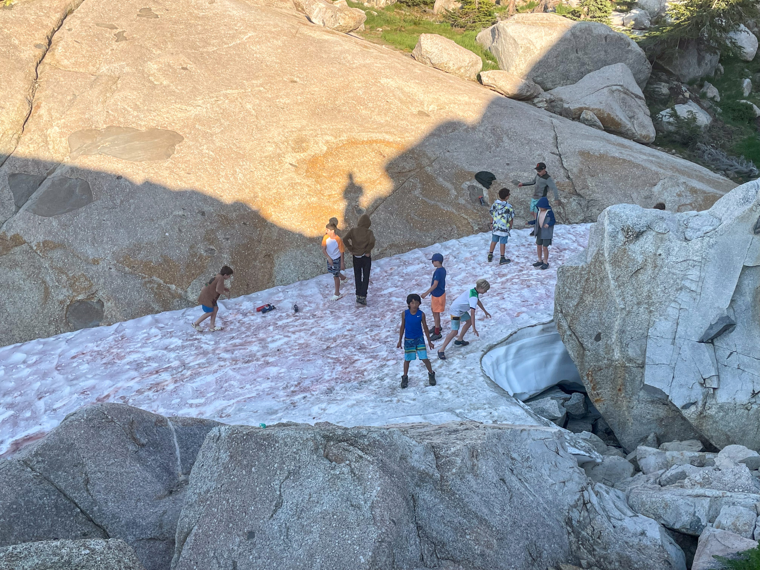Snowball toss on a backpacking trip in Yosemite