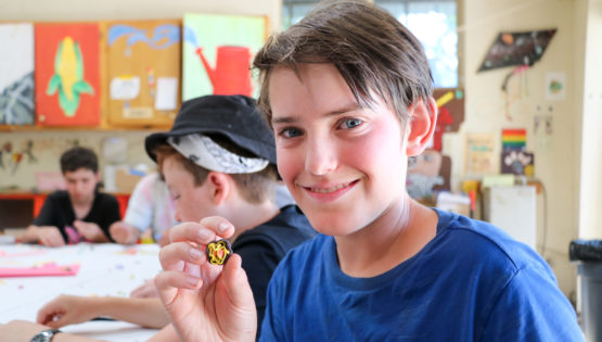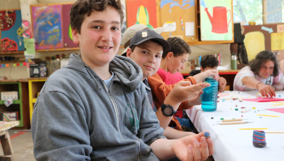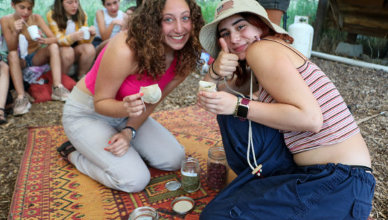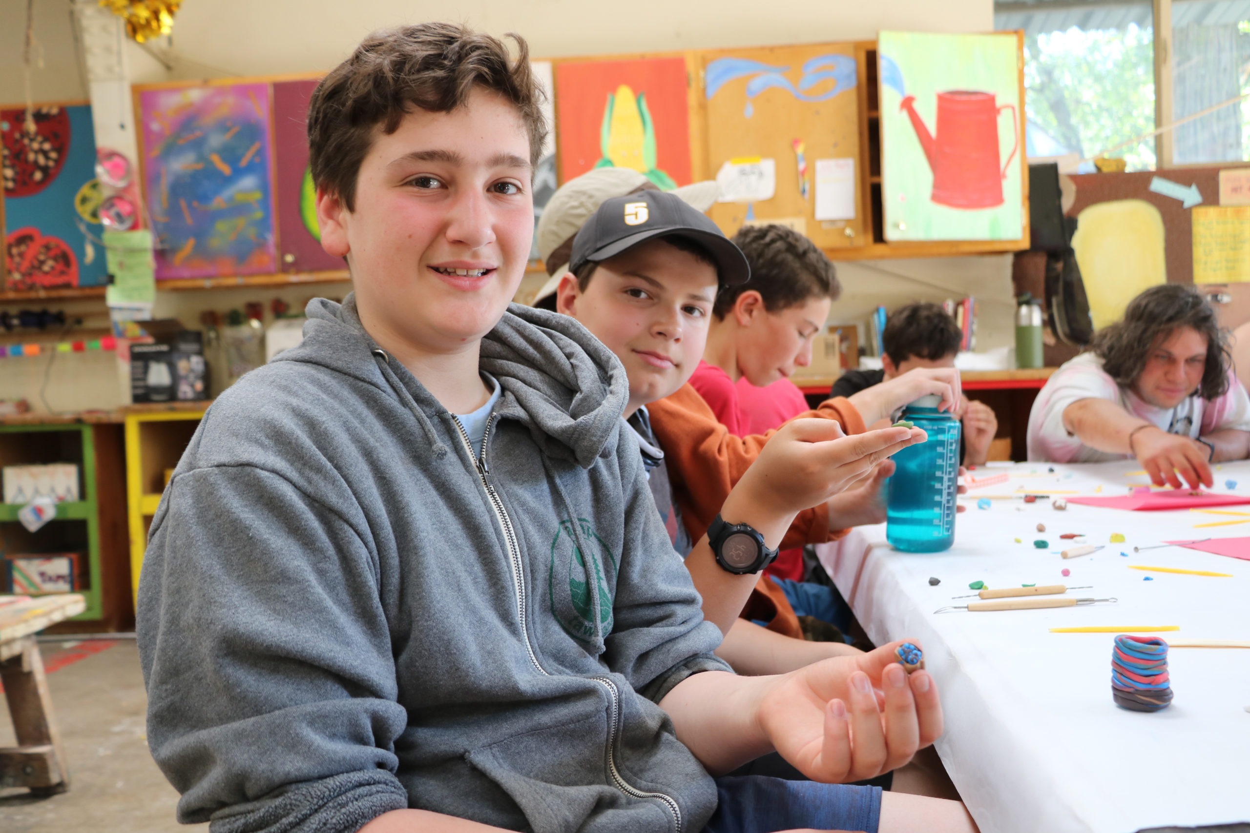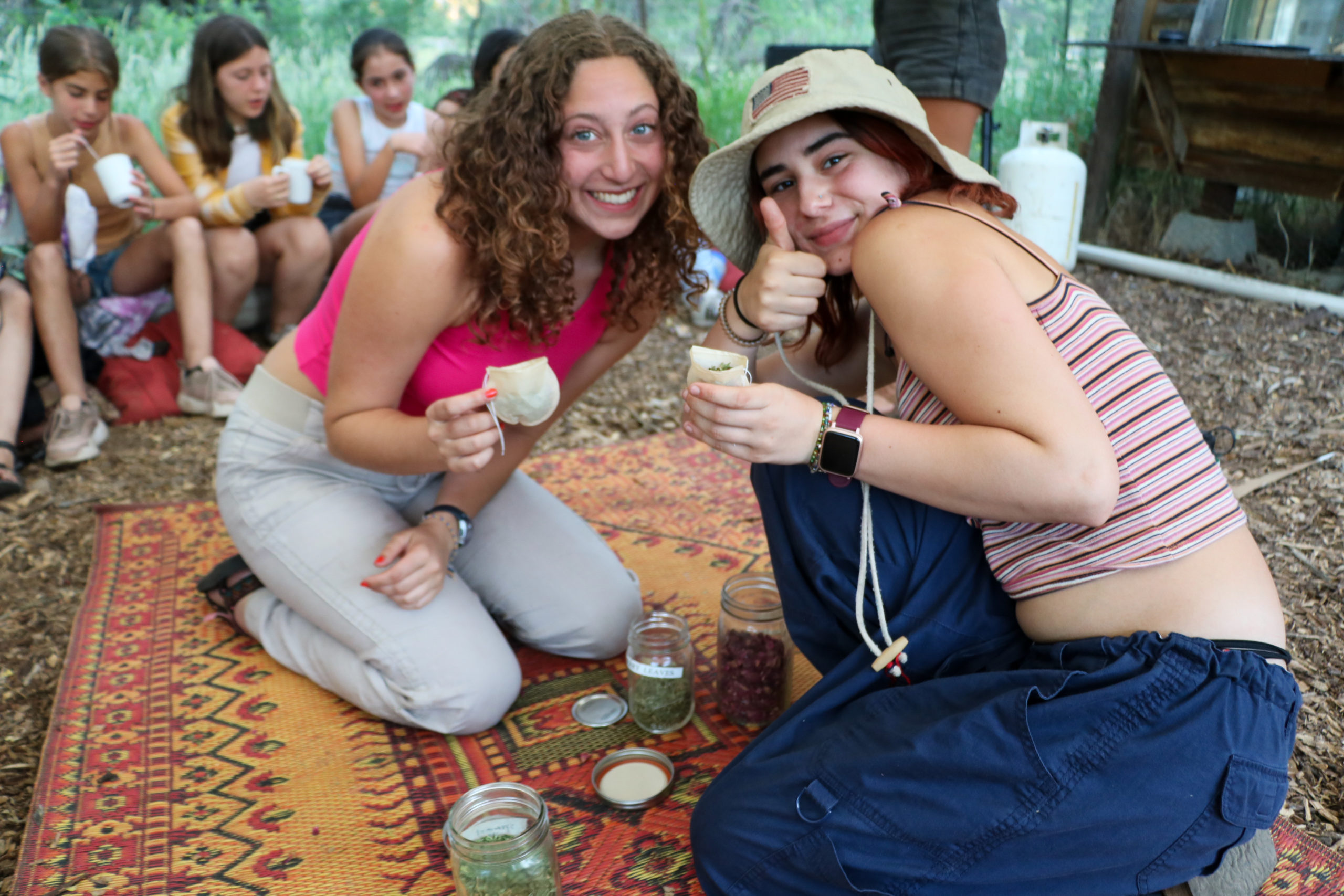 Now that Shabbat has ended, campers have returned to more high-energy programs. The units of Nitzanim and Chalutzim, which includes the bunks of B-Aleph, G-Aleph, B-Bet, G-Bet, B-9, G-9, B-10 and G-10, began their backpacking trips this morning with their counselors and wilderness specialist guides! Meanwhile, back at Camp, the SCITs (specialists and counselors in training) began their first day of working with campers, and helped in a range of ways from assisting with goat cheese-making, to leading parts of song session. Additional activities campers participated in that you can see below include tiny food clay sculpting at A & C, a super spy block, evening song session and more. We are so excited about the second week of Session A!