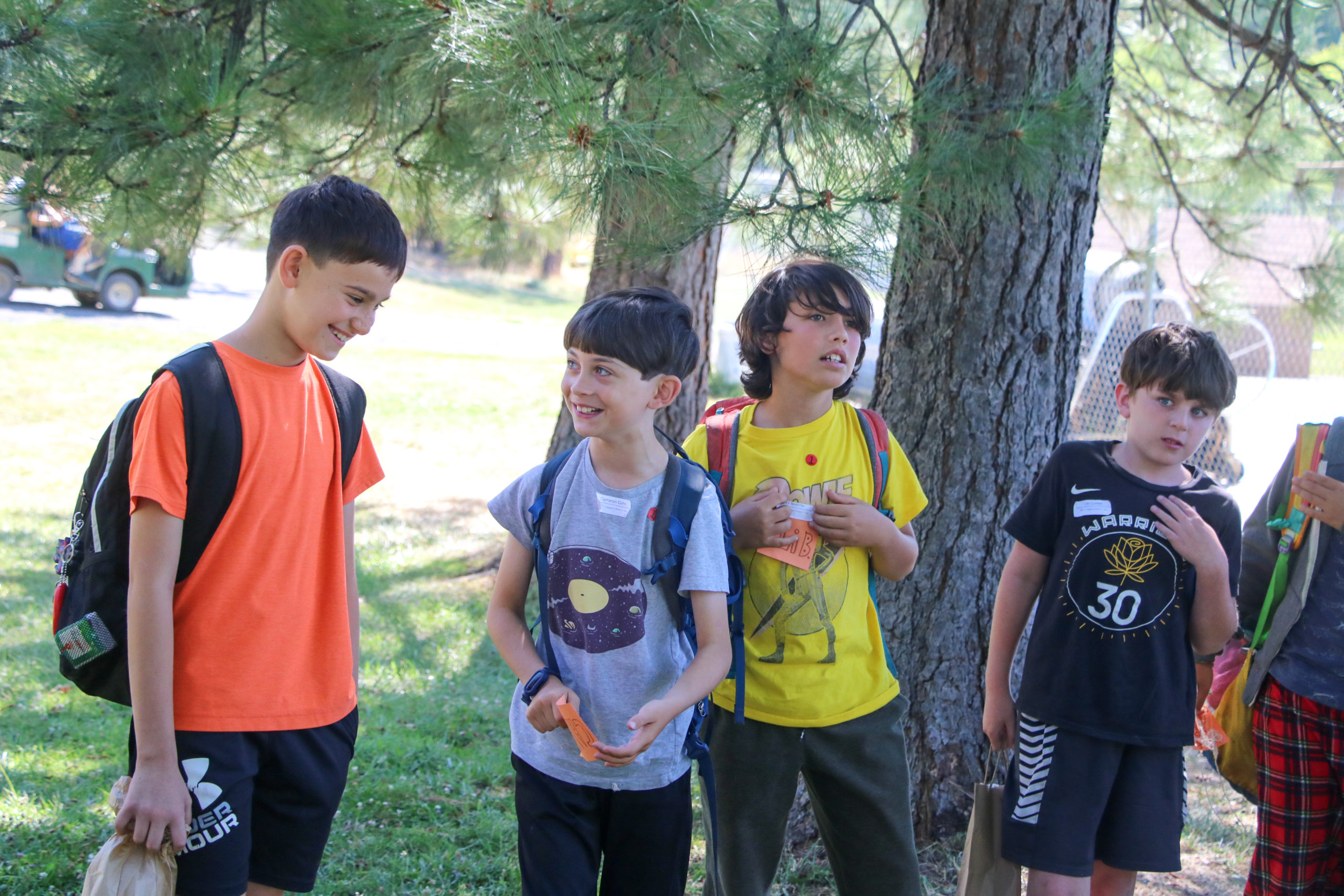 Campers are already getting immersed in each rung of our four-part mission: Positive self-image & self-esteem, creating a cooperative community, Tikkun Olam — a partnership with nature — and spirituality and positive Jewish identity. Through “work wheels,” campers take ownership and work together to clean the cabin, clear the table and refill food during family-style meal times — uplifting each other through this cooperative community. At the Gender Campfires last night and tonight’s Camp T Community anti-bullying and inclusion workshop, campers explored positive self-identity with productive peer discussions and through song.