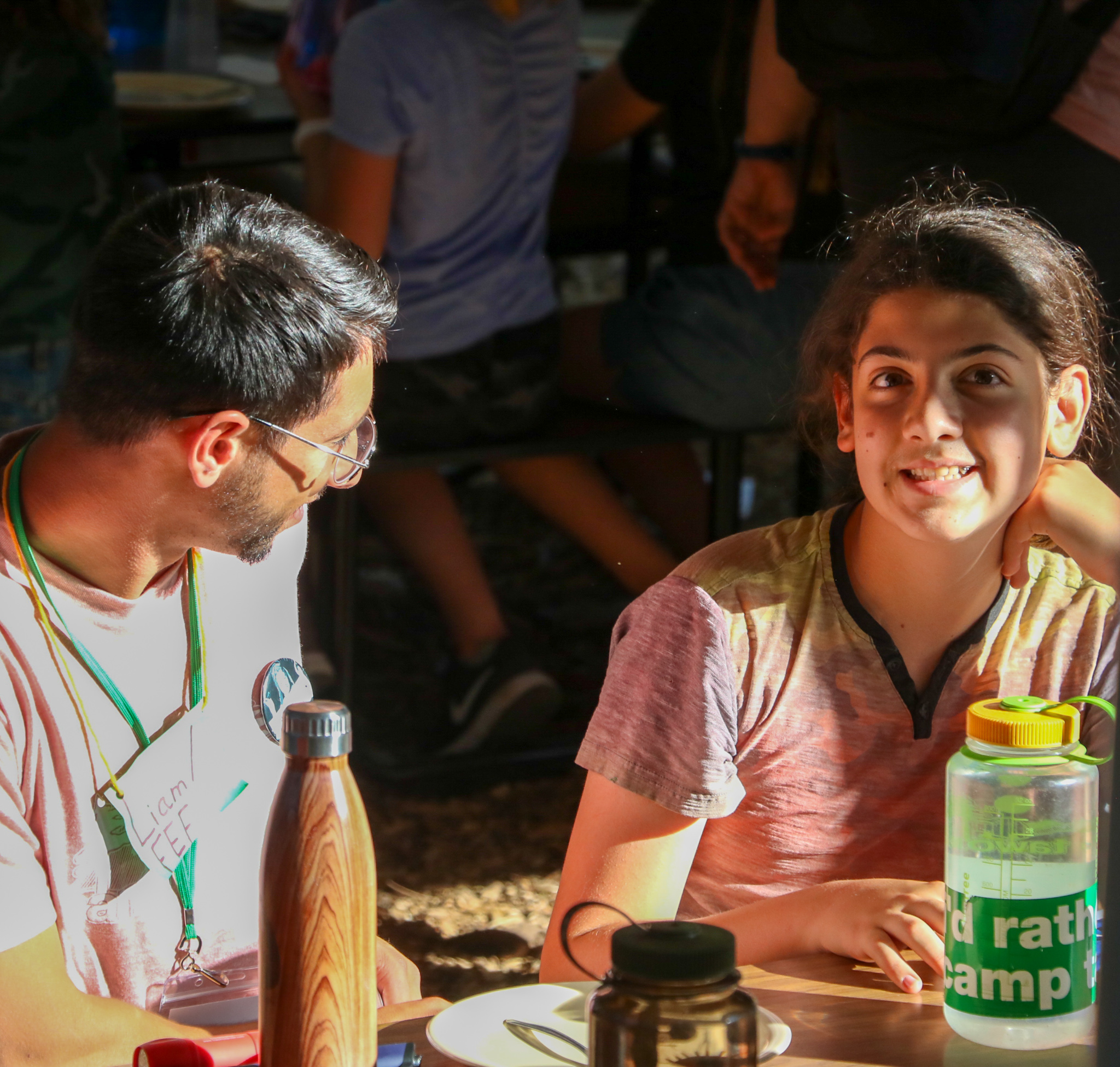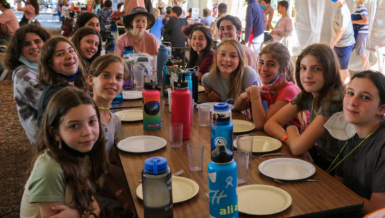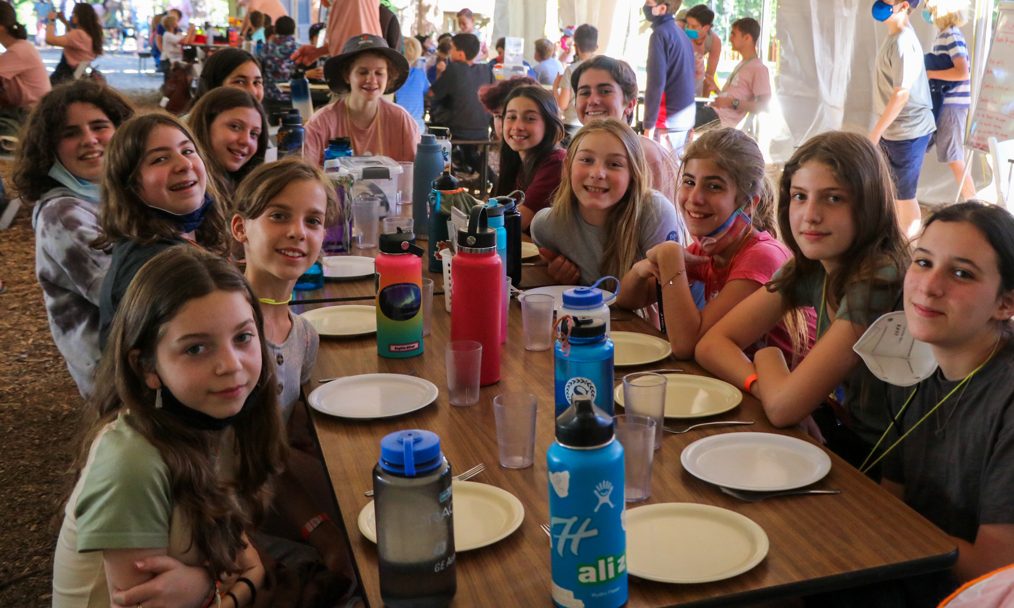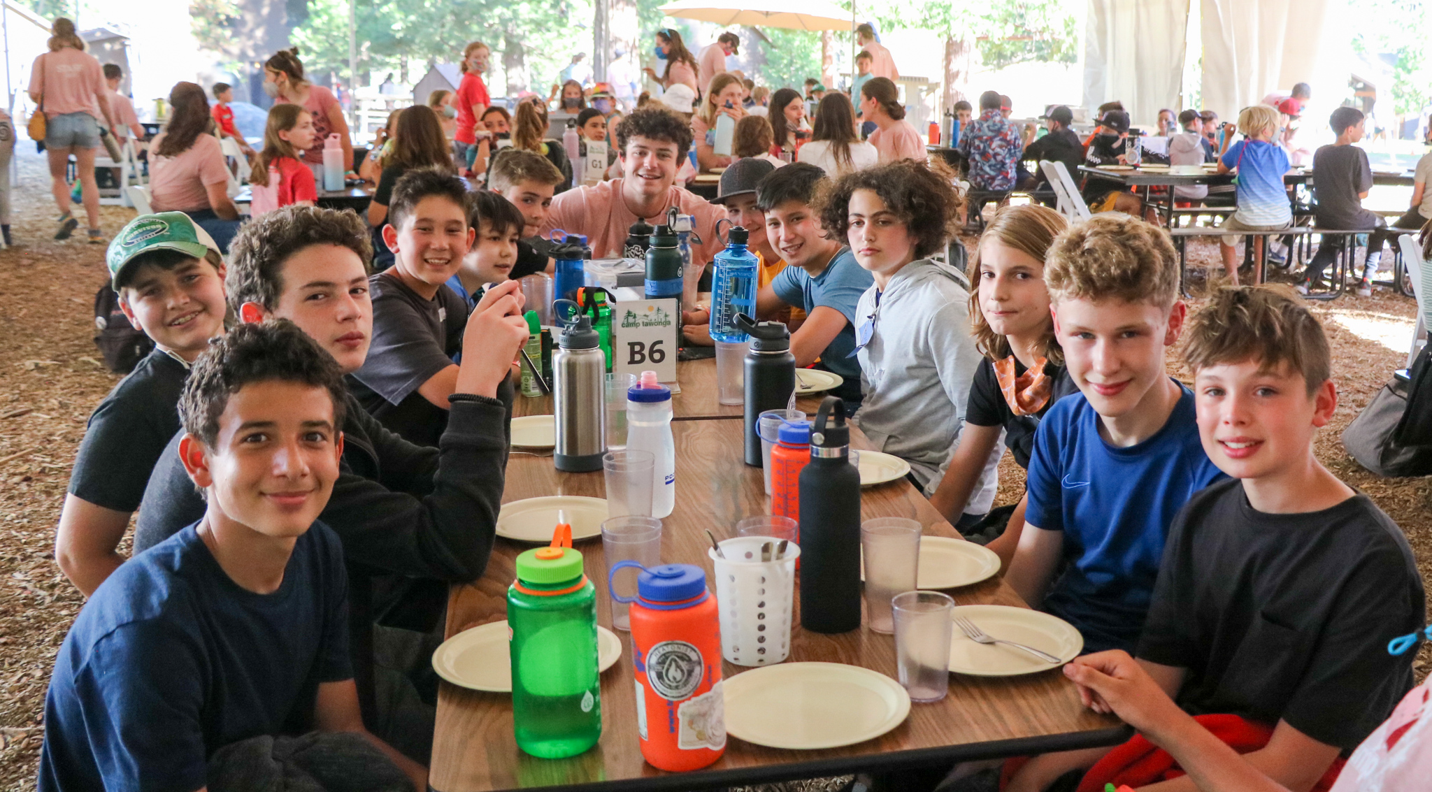 Campers dine in the outdoor dining pavilion located in the heart of camp.