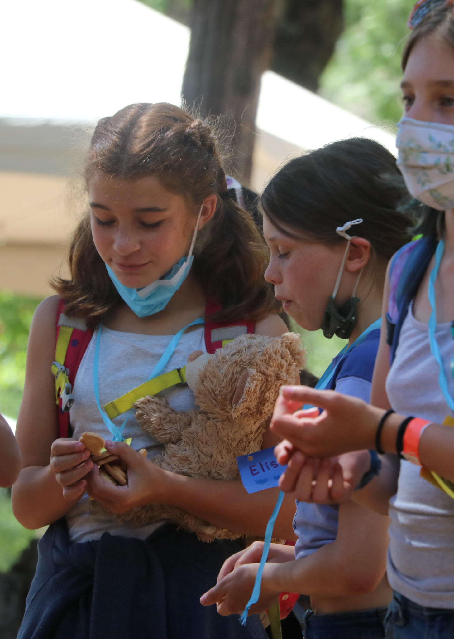 All masked up and outdoors, campers eagerly gathered with their counselors and bunkmates for the very first time, immediately bonding over name games and getting to know you activities. In the midst of meeting new friends and joyfully reuniting with old ones, campers and SCITs (Specialists/Counselors In-Training) worked together within their bunks to create two-minute skits to introduce each camper in the bunk to the rest of Camp.