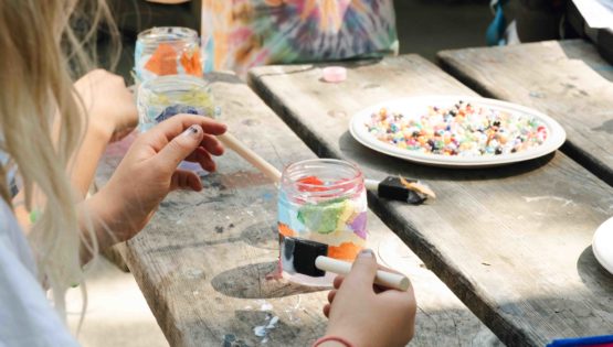 Making night lights at Arts & Crafts