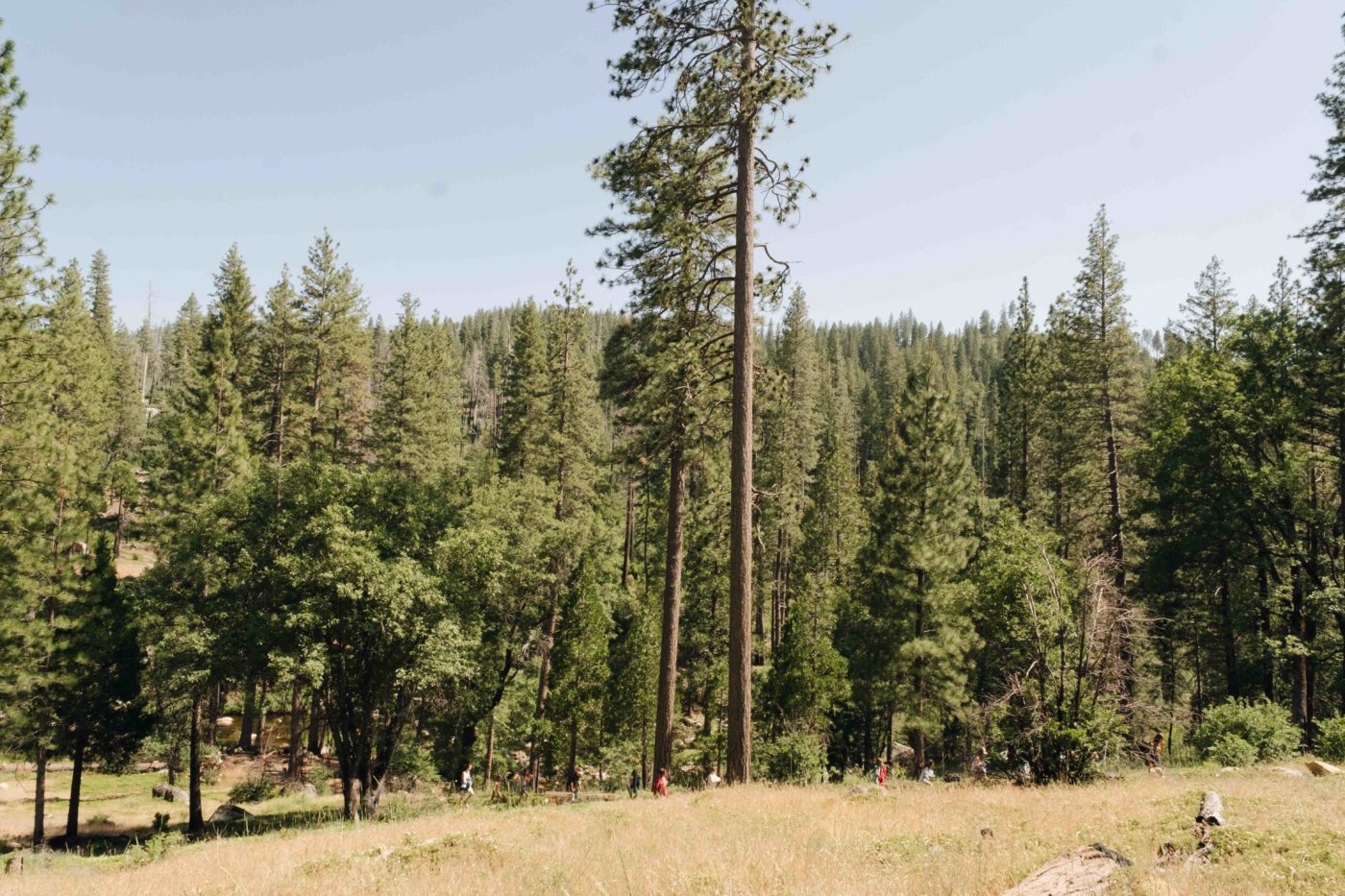 Campers hiking back from their riverside activity